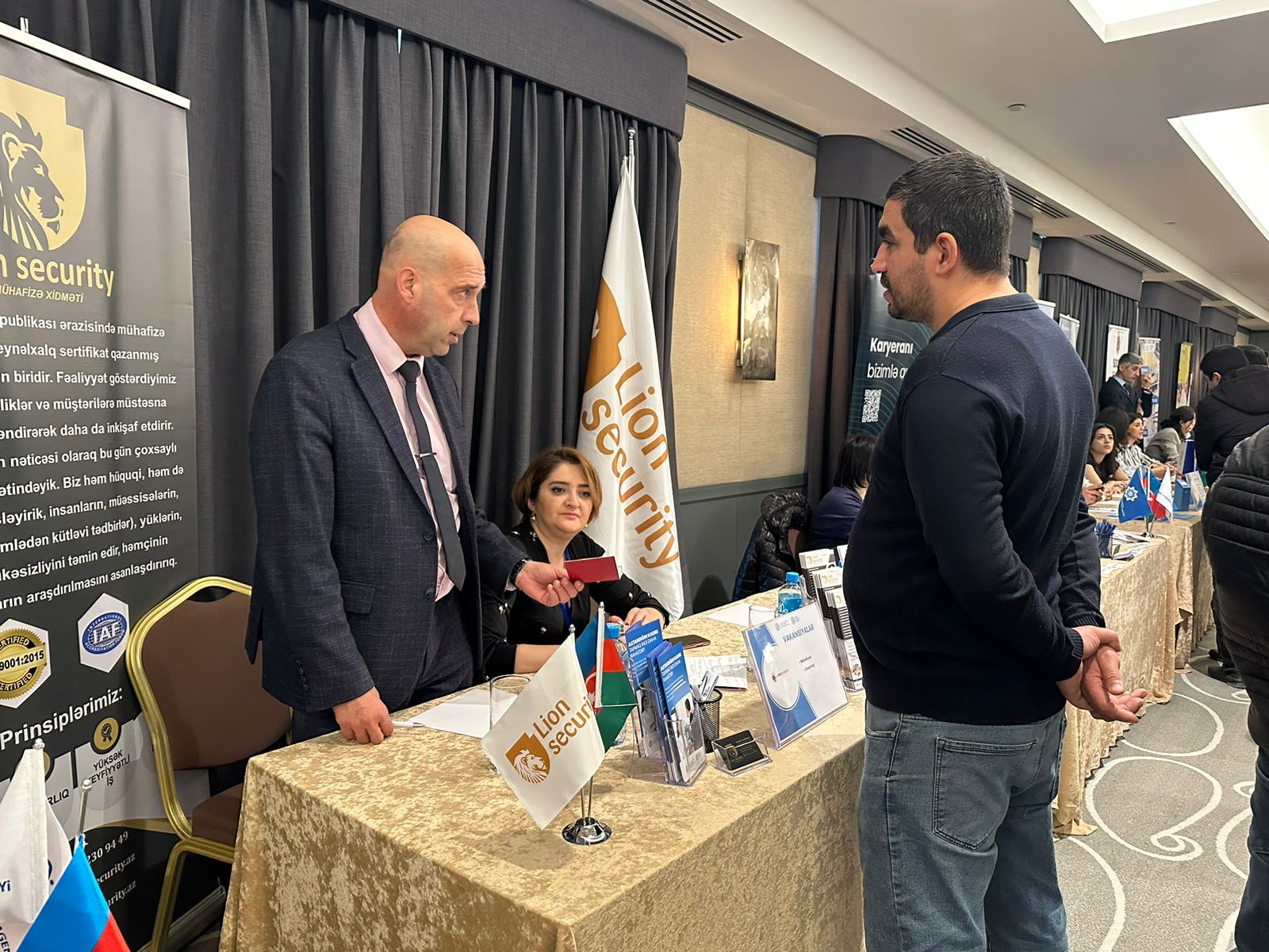 Əmək və Əhalinin Sosial Müdafiəsi Nazirliyinin tabeliyində Dövlət Məşğulluq Agentliyi tərəfindən 05.12.2023-cü il tarixdə Bakıda əmək yarmarkası təşkil edilib. Dövlətimizin işsizliklə mübarizə çərçivəsində  yürütdüyü bu siyəsətə “Lion Security” mühafizə şirkəti olaraq biz də öz dəstəyimizi göstərərək həmin yarmarkada iştirak etmişik. Şirkətimizdə işləmək istəyən şəxslərə qapılarımızı açıq elan edərək  onlardan işə qəbulla bağlı sənədləri qəbul etmişik.